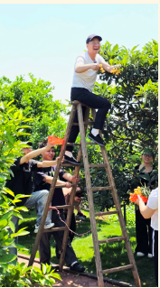 活動剛啟動,生態(tài)園便沸騰起來:有人架梯登高"精準狙擊"樹頂?shù)?quot;黃金果",有人組隊圍剿低處的"甜蜜據(jù)點",更有資深吃貨現(xiàn)場科普:"果皮帶裂縫的才是‘糖心炸彈’!"歡聲笑語中,竹籃漸漸堆成小山,連空氣里都彌漫著清甜的果香。