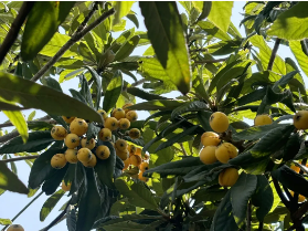 櫻桃的余韻還未散盡,轉(zhuǎn)眼間"雙童"屋頂已換上金燦燦的新皮膚!抬頭看——杜甫筆下"枇杷樹樹香"的詩意場景已悄然上線。一串串圓潤飽滿的枇杷化作串串小燈籠,在綠葉間探出圓滾滾的臉蛋,甜香勾得人挪不動步子~