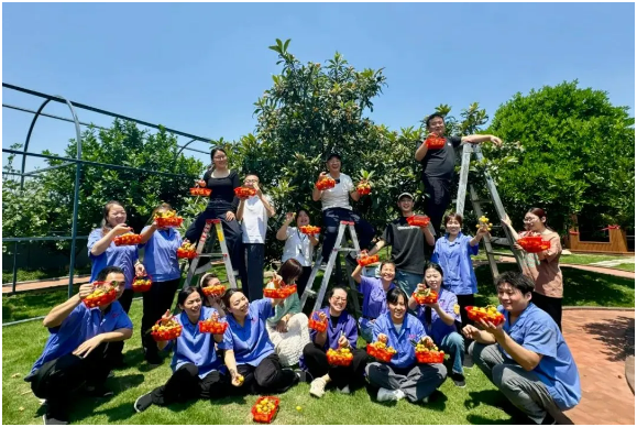 借著這滿樹金黃的豐收盛景,雙童特別策劃了一場別開生面的“枇杷節(jié)”!雙童人手手提果筐、腳踩歡歌,開啟了一場名為"黃金大作戰(zhàn)"的枇杷狂歡。創(chuàng)始人樓仲平也加入大家,化身"摘果先鋒",與員工共赴這場初夏甜蜜之約!