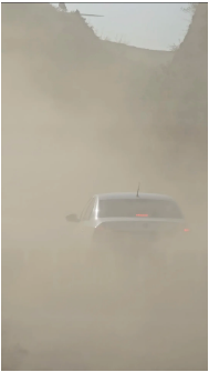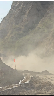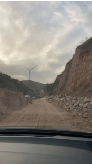 因?yàn)樾旭偟?/span>道路開始從柏油路變成坎坷泥濘的土路,一路上顛簸崎嶇不說,中間有一段路程,更是黃沙漫天、塵土飛揚(yáng),能見度幾乎為“0”!車轍印剛壓出半尺深,轉(zhuǎn)眼就被山風(fēng)卷著砂石填平,如果此時(shí)下車步行的話,估計(jì)沒走幾步路,“膝蓋骨里都得灌進(jìn)二兩黃土”來!