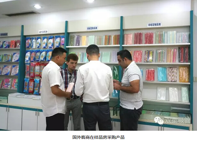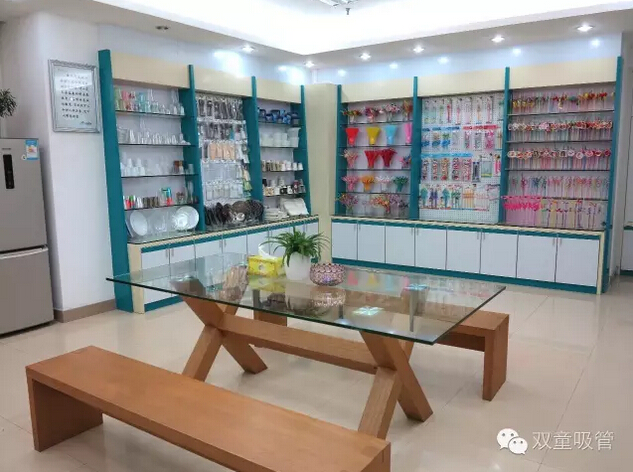 這張圖里,左面的展示區(qū)屬于我們的進(jìn)出口公司的展示區(qū),往往來買吸管的客戶都有別的一次性用品的需要,這時候我們的進(jìn)出口公司就派上用處啦!