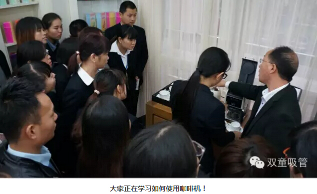 還真別說,經(jīng)過當(dāng)家人的培訓(xùn)后,我們雙童的小姑娘可都是泡咖啡能手呢!每當(dāng)有客人走進(jìn)樣品房,我們都能讓他享受到最精致的服務(wù)和美味的茶歇,感受到溫馨的氛圍!至于咖啡泡的如何?看最后一張我們李大大的笑容就知道啦!