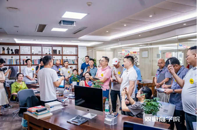 樓老師向?qū)W員們介紹道:面對當(dāng)下越來越卷的行業(yè)競爭,他放棄內(nèi)卷的不良循環(huán),毅然帶領(lǐng)"雙童"突破“一根吸管”的局限,突破路徑依賴,打開組織邊界,進(jìn)行破界創(chuàng)新,鼓勵"雙童"員工拓展“第二曲線”,并在2018年出資為員工搭建了創(chuàng)業(yè)共享平臺,激發(fā)員工積極性,完成從員工到管理者的身份轉(zhuǎn)變,實現(xiàn)共同富裕!
