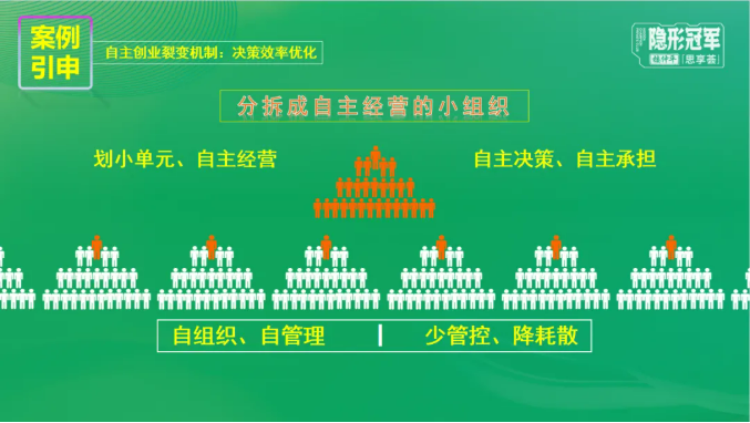 正如雙童自主創(chuàng)業(yè)裂變機制中的劃小單元、拆分自主經(jīng)營,便是治理優(yōu)化結(jié)構(gòu)優(yōu)化決策鏈,減少官僚和博弈的一大例證,極大提高了人效。