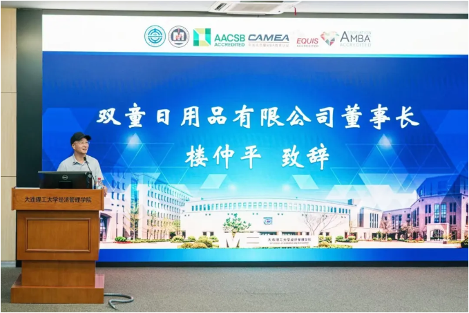 樓總在致辭中表示,自己內(nèi)心十分激動與感恩。他是從挑貨郎擔(dān)起家的,一步步創(chuàng)辦企業(yè)、設(shè)立商學(xué)院,最終走進(jìn)高校支持教育,對此他倍感珍惜。同時他與大連緣分深厚,創(chuàng)業(yè)后的第一個美國客戶便來自這座城市。