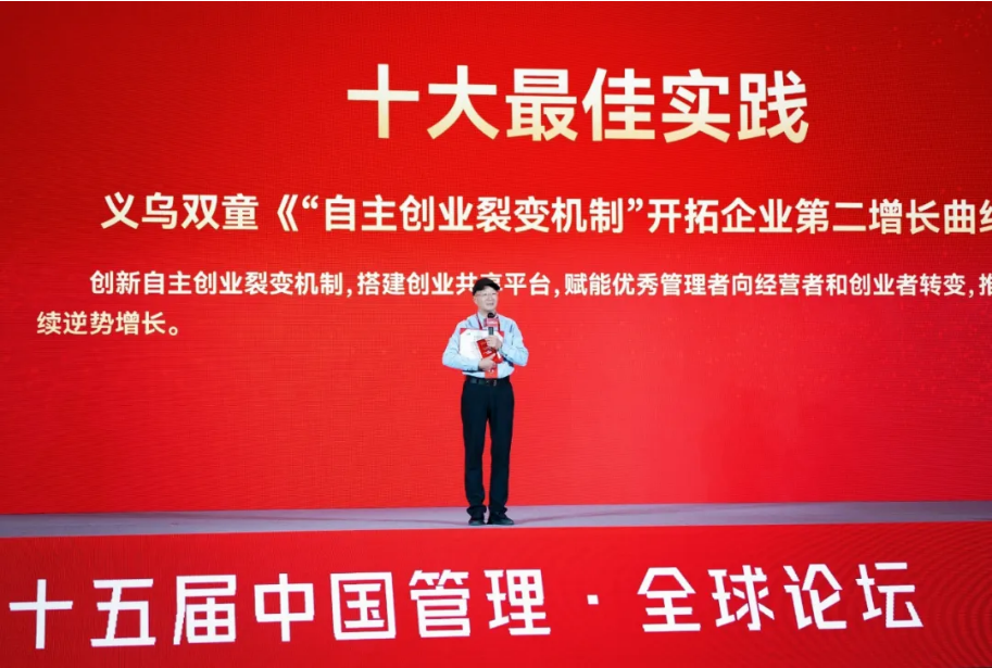 其中,雙童憑借《“自主創(chuàng)業(yè)裂變機(jī)制”開拓企業(yè)第二增長曲線實(shí)踐案例,與海信、蒙牛、華為等10家企業(yè)案例,一同榮獲首屆“中國企業(yè)管理最佳實(shí)踐榜”“十大最佳實(shí)踐”獎項(xiàng)值得一提的是,雙童也是獲獎的十大企業(yè)中唯一一個(gè)中小型企業(yè)!這套以激活個(gè)體、賦能組織為核心的創(chuàng)新模式,不僅為破解經(jīng)營困局提供了新思路,更展現(xiàn)了中國管理智慧的獨(dú)特價(jià)值。