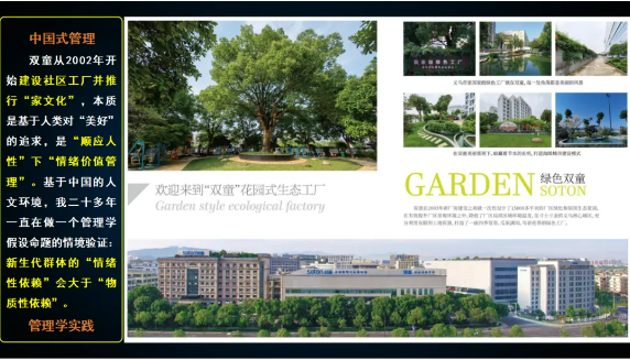 同樣,雙童花園式社區(qū)工廠的建設(shè),其本質(zhì)上也是基于人類對(duì)“美好”的追求,是“順應(yīng)人性”下的“情緒價(jià)值管理”。樓仲平希望通過(guò)打造人與自然、生產(chǎn)與生活和諧共生的空間,以增強(qiáng)員工的歸屬感和幸福感,從而激發(fā)員工的善意。