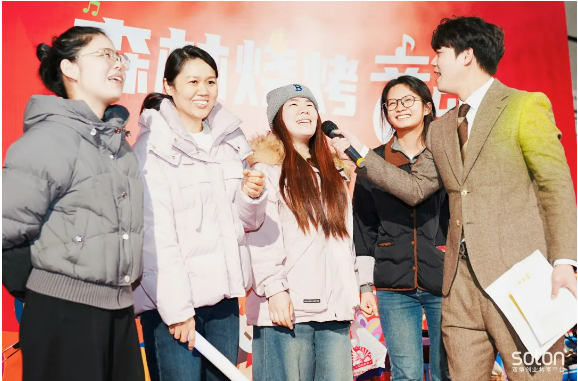 雙童創(chuàng)始人樓仲平也化身“圣誕老人”,親手為大家送上熱騰騰的烤串與代金券,將暖意傳遞至每個人手心?,F(xiàn)場還精心準備了三十張刮刮樂彩蛋,大家興致勃勃地刮開涂層,歡笑聲此起彼伏,更有人幸運中得驚喜大獎,點燃了全場!
