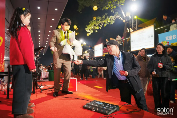 整場活動中,主持人用幽默的串場與巧妙的互動設計,將全場數(shù)百人的情緒悄然編織在一起,無論年齡或崗位,每個人都沉浸在這場愉悅的相聚中?;迎h(huán)節(jié),參與者可通過各種輕松有趣的小游戲贏得抽獎機會!無論是即興的“石頭剪刀布”對決、蘿卜蹲挑戰(zhàn),還是“歌手名字接龍”等活潑互動,甚至只需積極鼓掌,都有可能成為抽獎的幸運兒。