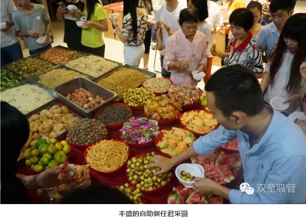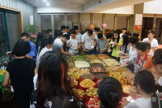人數(shù)這么多,吃得也得升級(jí)呀!為了讓壽星們吃飽喝足,我們的后勤部門(mén)也是準(zhǔn)備了一大桌的美食。這不,瓜果點(diǎn)心、糖果糕點(diǎn)、精致小菜、葡萄酒、啤酒、各種飲料,都以自助餐的形式任君采擷!你要不吃飽喝足,你都不好意思出這個(gè)門(mén)呀!