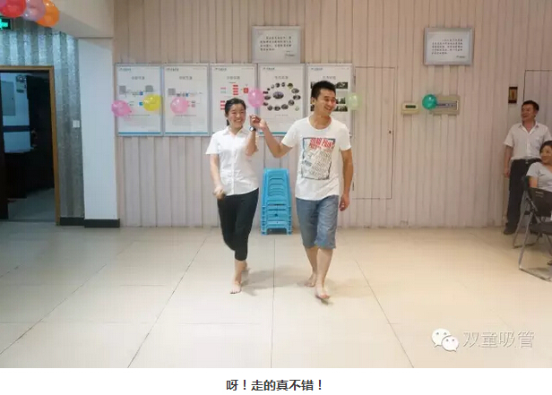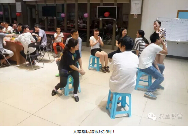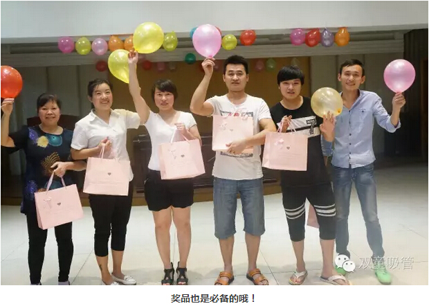 你以為這就結(jié)束了?還沒(méi)呢!接下來(lái)是重頭戲——“杯中傳情。員工們被分為兩隊(duì),在相同的時(shí)間內(nèi)用嘴叼杯子傳遞水,途中可不能用嘴哦!游戲好不好玩,看照片你就知道啦!