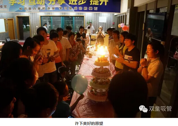 生日會(huì)到最后當(dāng)然要請(qǐng)壽星們吃蛋糕啦!公司特地準(zhǔn)備了五層的巨無(wú)霸蛋糕,真是讓人流口水呀!七八十號(hào)壽星圍在蛋糕邊唱歌許愿,那場(chǎng)面,溫馨極了!整個(gè)生日會(huì)的氣氛都是那么的愉快輕松,讓大家把所有的煩惱和不愉快都忘在九霄云外!最后,當(dāng)然要祝福我們的壽星們,生日快樂(lè),永遠(yuǎn)幸福健康!