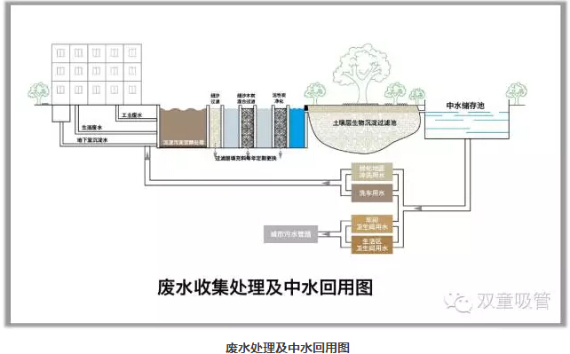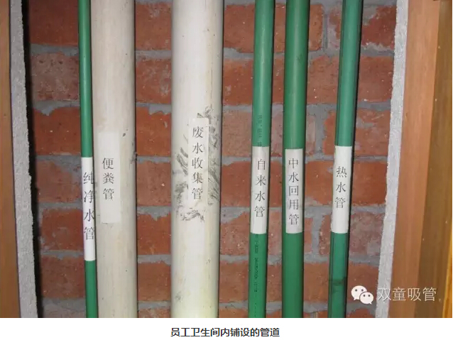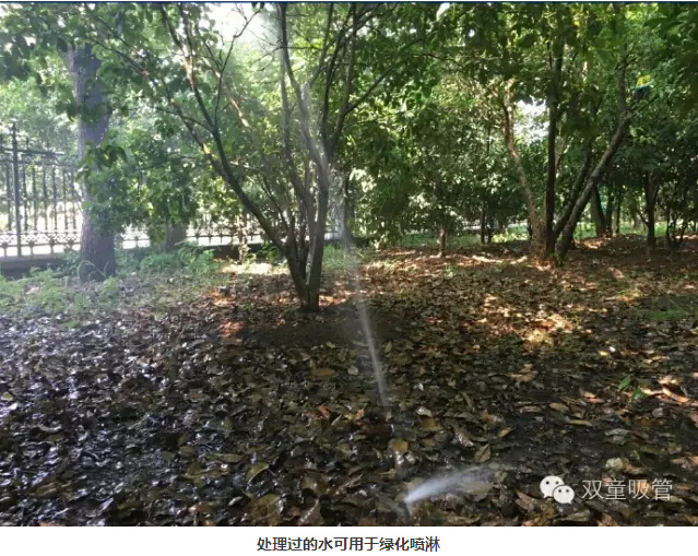最后經過處理的水就已經達到了三類水的標準,中水通過設在池中的抽水泵打到屋頂,專門用于宿舍衛(wèi)生間的馬桶沖水、綠化澆灌和道路清洗。