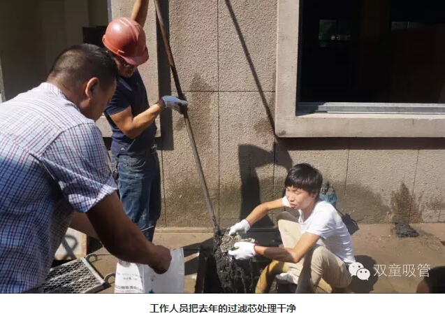 而過濾池中的過濾芯每年都要進行定期更換,今年當然也不例外。必須先將去年的埋下的過濾芯全部處理干凈后,才能放入新的過濾芯!