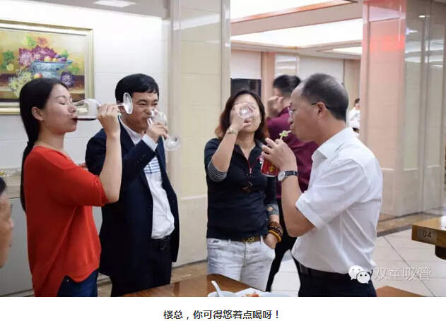 到雙童參觀交流的朋友們有時(shí)也會(huì)在餐廳享用自助餐。一向不飲酒的當(dāng)家人樓總在客人們主動(dòng)敬酒盛情難卻之下,也拿起了王老吉和大家干杯呢!看來(lái)他還真是我們吸管的首席代言人呢!