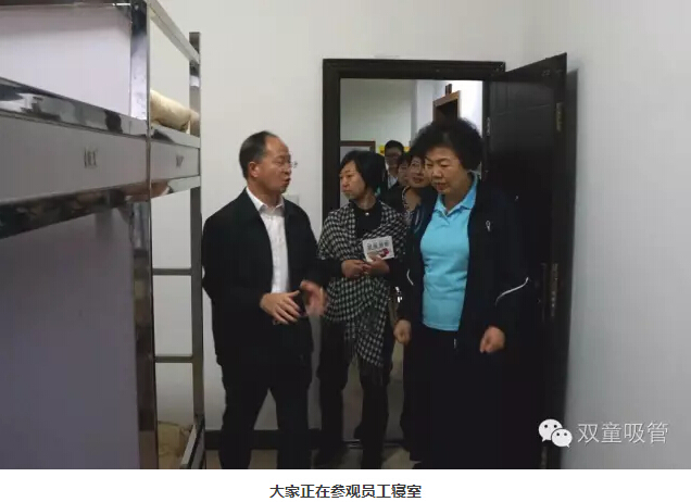 既然是婦聯(lián)領(lǐng)導(dǎo),大家對(duì)“雙童”員工們的生活環(huán)境都十分關(guān)心。這不,參觀的下一站就是我們的員工寢室啦!當(dāng)家人樓總向大家介紹我們的寢室。每個(gè)房間都配有干凈整潔的洗手間、寬敞明亮的洗衣陽臺(tái),并配有各種家具,每個(gè)房間安裝有空調(diào),24小時(shí)供應(yīng)熱水洗澡和純凈飲用系統(tǒng)。同時(shí),我們還組建了物業(yè)團(tuán)隊(duì)全方面的為員工進(jìn)行服務(wù)。