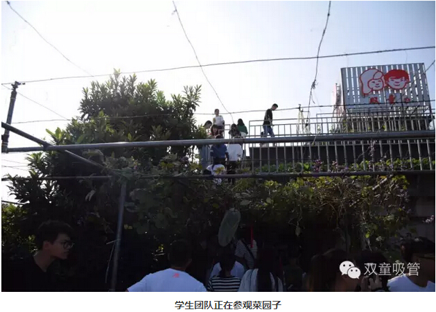 最后,當(dāng)然要帶大家到我們的菜園子逛逛啦!在聽到雙童的屋頂菜園有700多平方米,所有的種植區(qū)都是一米二厚的土層,種蔬菜的有機(jī)肥,都是雙童生物垃圾處理池里的生物垃圾發(fā)酵而成時(shí),同學(xué)們都贊嘆不已!