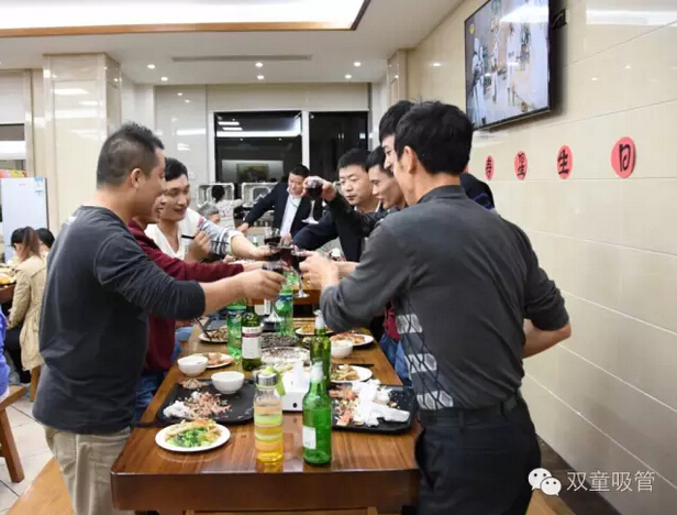 吃喝,吃喝,光吃不行還得喝!“酒水飲料”自然是調(diào)節(jié)氣氛的最佳,五星級食堂舉辦的第一次生日會,自然要幾位“五星級的領(lǐng)導”陪同!你看啊,各個車間的主要領(lǐng)導都來了??!他們的宗旨就是:一定要讓壽星們不光吃的好,還要喝的盡興!領(lǐng)導們端著酒杯笑嘻嘻的對每位壽星說:“沒事,喝嘛,喝醉了明天啥時候起來,啥時候上班!” 壽星們,你們還不趕緊放開了量,爭取也灌倒一兩位領(lǐng)導啊?。?!