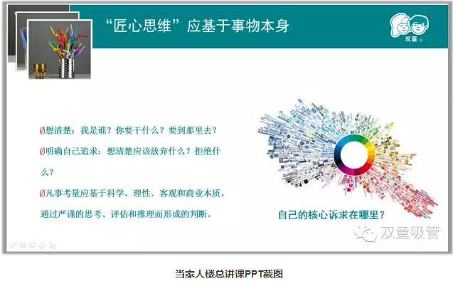 首先,當家人樓總分享了自己30多年的創(chuàng)業(yè)經(jīng)歷,在不斷失敗的教訓中,他選擇了把一根吸管做精、做細!通過二十多年積累,雙童初步形成了專注經(jīng)營、創(chuàng)新進取、綠色低碳、和諧共贏和精細化管理的發(fā)展理念,雙童也發(fā)展的越來越好!而這些都離不開匠心