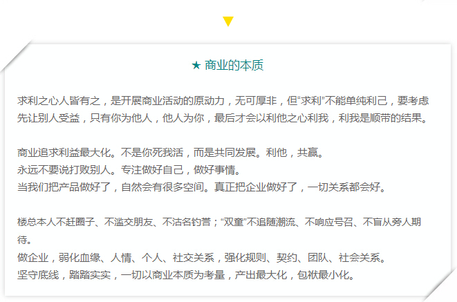 摘選部分筆記,濃縮的語(yǔ)句后是豐厚的經(jīng)驗(yàn)和感悟,值得思索。在看我的筆記之前,不妨想一想,然后寫(xiě)下你對(duì)這樣幾個(gè)概念的理解:商業(yè)本質(zhì);匠人之心。閱讀中再與樓總所說(shuō)對(duì)照思考,收獲會(huì)更多。