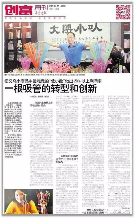 【《齊魯晚報(bào)》整版面報(bào)道“雙童”】一根吸管的轉(zhuǎn)型和創(chuàng)新:“雙童”如何把低、小、散、弱、最不值錢的小商品做到全球領(lǐng)先!