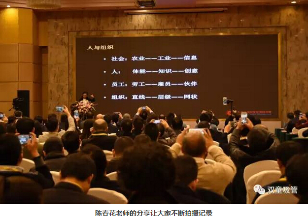 接下來,趙曙明教授從人力資源的角度做了主題演講《共享經(jīng)濟(jì)下企業(yè)人力資源管理》。說起趙曙明老師,他其實(shí)是陳春花教授的老師,也是現(xiàn)代管理學(xué)之父彼得·德魯克的學(xué)生,是中國德魯克管理理論的布道者!趙老師講到共享經(jīng)濟(jì)就是這種趨勢發(fā)展下的產(chǎn)物之一,并提出了共享經(jīng)濟(jì)在組織所面臨的三大挑戰(zhàn)和三大對策。企業(yè)做出改變迫在眉睫,管理不是管理人,而是領(lǐng)導(dǎo)人;管理的目標(biāo)是充分發(fā)揮和利用每個(gè)人的優(yōu)勢和知識!