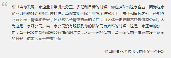 “組織不會照顧個人,也就意味著在組織中我們是用目標(biāo)、責(zé)任、權(quán)力來聯(lián)結(jié),而不是用情感來聯(lián)結(jié)的。”
