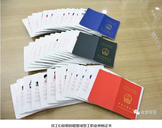 幾個月下來,通過公司和員工們一起努力,“雙童”的近百位員工考取了國家吸管成型工職業(yè)資格證書,這也意味著“雙童”的員工們成為了一個個名副其實的吸管專家,正如當家人樓總的那樣,全球最頂尖的吸管專家一定在“雙童”!