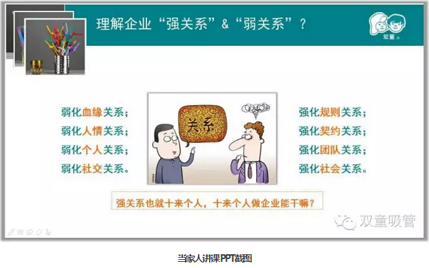 接著,樓總詳細(xì)介紹了以“匠人”思維來理解的四大本質(zhì)。首先是“關(guān)系”的本質(zhì),做企業(yè)應(yīng)該弱化個(gè)人關(guān)系,強(qiáng)化企業(yè)關(guān)系!畢竟一個(gè)人的能力是有限的,他能發(fā)展的強(qiáng)關(guān)系范圍也就只有十來個(gè)人,在企業(yè)經(jīng)營(yíng)中,十多個(gè)人的作用并不大!真正把企業(yè)做好了,一切關(guān)系才會(huì)好!其次就是“創(chuàng)新”、“競(jìng)爭(zhēng)”和“規(guī)模”的本質(zhì),創(chuàng)新就是一點(diǎn)點(diǎn)改變,創(chuàng)新需要極大的信仰追求和耐心,需要以五年、十年作為一個(gè)單位堅(jiān)持推進(jìn)!而企業(yè)競(jìng)爭(zhēng)的本質(zhì)就是產(chǎn)品和服務(wù)差異化,“有別于他人”,盡量建立無人能夠仿效的商業(yè)思維和企業(yè)文化!