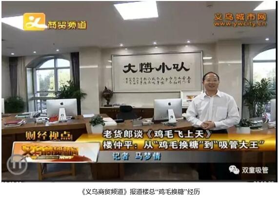 其實在《雞毛飛上天》開播之前,義烏電視臺記者就特地來到“雙童”,采訪當家人樓總“雞毛換糖”的創(chuàng)業(yè)經(jīng)歷。從“雞毛換糖”的小商販到白手起家創(chuàng)辦“雙童”,樓總敢闖敢拼的創(chuàng)業(yè)經(jīng)歷其實和《雞毛飛上天》中所展現(xiàn)的浙商形象不謀而合。昨晚,義烏電視臺就播出了樓總的報道,下面妞就放上視頻讓大家一睹為快吧!