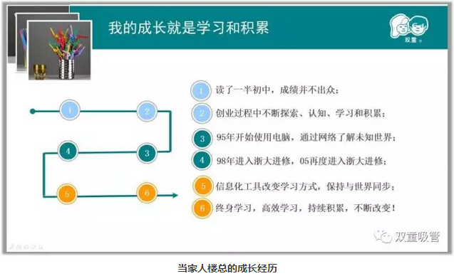 接下來,吸管妞也通過當(dāng)家人樓總的成長之路來鼓勵(lì)大家,起點(diǎn)低沒關(guān)系,重要的是你要敢于奮斗,勤于學(xué)習(xí)!通過不同的角度來詮釋樓總的學(xué)習(xí)成長之路,相信對(duì)同學(xué)們會(huì)有不一樣的啟迪!