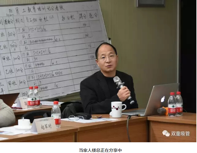 一開場,大家對“雙童”的“家文化”很感興趣!當(dāng)家人樓總首先和大家介紹了“家文化”在“雙童”的應(yīng)用及實(shí)踐效益。“家”是員工最大的牽掛,解決了員工的問題,他們才能全身心投入到工作當(dāng)中,人心管理就是企業(yè)生態(tài)系統(tǒng)的改善。“雙童”明確把“家文化”作為員工管理的著力點(diǎn),以“小家”形成“大家”,凝聚團(tuán)隊“人心”!