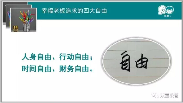 很多企業(yè)主都有這樣的痛點(diǎn):我很忙!每天要處理各種各樣的關(guān)系,每天連番的應(yīng)酬交際任務(wù),根本沒有時(shí)間兼顧家庭,自由更是無從談起!而當(dāng)家人樓總卻認(rèn)為一個(gè)幸福老板必須要擁有四種“自由”,這話從何說起呢?接下來吸管妞就向大家詳細(xì)闡釋一下吧!