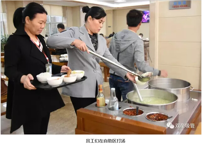 2016年,“雙童”投入一百多萬(wàn)元對(duì)員工餐廳進(jìn)行五星級(jí)硬件提升,讓員工們的就餐環(huán)境更有品質(zhì)!今年,為了讓員工們享用到更優(yōu)質(zhì)的餐飲,提升員工的幸福感,公司決定在餐飲上再增50%,還是完全免費(fèi)?。?!如此好消息,妞當(dāng)然要和大家來(lái)分享(炫耀)啦!