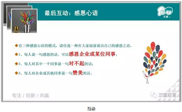 課程的最后,吸管妞也鼓動童鞋們向企業(yè)、領(lǐng)導(dǎo)、同事表示自己埋藏在心中的感謝!