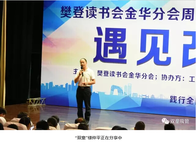 慶典上,樊登讀書會金華分會會長王旭飛進行了致辭,義烏工商學(xué)院賈少華院長也作了“不讀書無成長”的主題分享,指導(dǎo)大家如何培養(yǎng)有學(xué)習(xí)力的孩子。同時,在頒獎環(huán)節(jié)中,“雙童”樓仲平和“雙童吸管”也分別獲得了“優(yōu)秀閱讀推廣人”和“優(yōu)秀企業(yè)讀書會”的榮譽稱號!