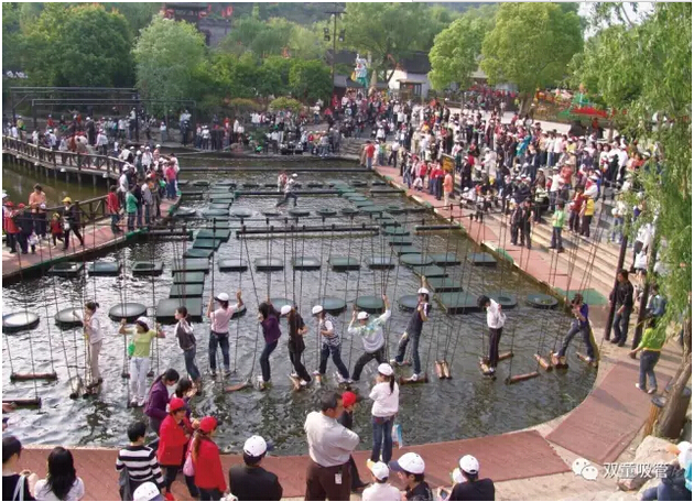 走進(jìn)景區(qū)內(nèi),一派市井熱鬧的景象!街衢縱橫,茶樓酒肆、藝場(chǎng)教坊林立,處處管弦笙歌。傳統(tǒng)賣藝耍大刀的當(dāng)街而舞、皮影戲、曲藝、 “繡球招親”、鬼屋,各類項(xiàng)目真是應(yīng)接不暇,“雙童”人都要high翻天啦!