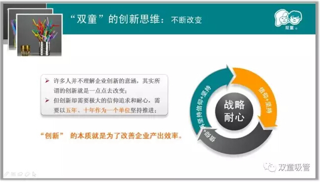 最后,樓仲平也分享道:其實(shí)真正把自己的產(chǎn)品做好了,企業(yè)在一定時(shí)候擴(kuò)大規(guī)模才是自然而至的,因此不要一味地想著大,要學(xué)會(huì)適當(dāng)做減法。“雙童”的發(fā)展始終伴隨著不斷的放棄,在自己的領(lǐng)域里細(xì)分細(xì)分再細(xì)分,把一根吸管做到極致!