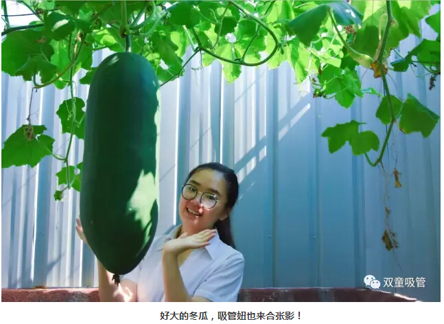 瞧!這冬瓜長得五大三粗都快壓彎了枝架,這么大的冬瓜大家都爭著和它合影呢!看來,咱們的雙童吃貨們又有福啦!