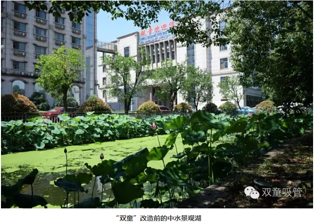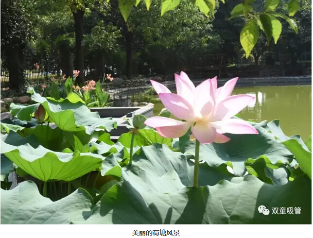 “雙童人最喜歡駐足停留的便是行政樓前的中水景觀湖了,景觀湖將樹木、花朵、小橋、流水融合在一起,一旁的樹木搖曳風(fēng)姿,湖水在陽光的照耀下顯得格外美麗!
