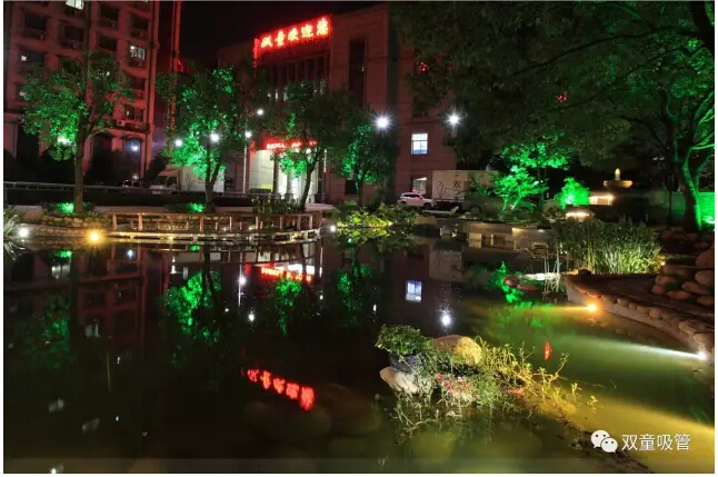 當(dāng)夜幕降臨,走在鑲嵌在地面上的鵝卵石小徑上,掩映在綠樹成蔭下的路燈也是美麗極了!夜色初上,朦朦朧朧的淡淡燈光,與月色交相輝映,夜幕下的“雙童”也別有一番風(fēng)味!