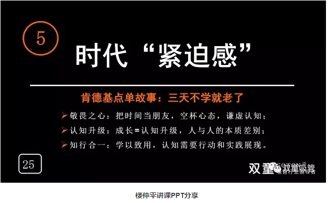 時代“緊迫感”:“雙童”樓仲平在時隔幾天去肯德基時,發(fā)現(xiàn)肯德基已經(jīng)在自助點單了,而自己還在傻傻的等工作人員點餐!這也告訴我們要不斷地學(xué)習(xí),三天不學(xué)你就老了!舊觀念終結(jié),發(fā)展模式層出不窮,新的生活方式不斷呈現(xiàn),行業(yè)變化之快,超出想象,如果你不學(xué)習(xí)就要被淘汰,你就“老了”!
