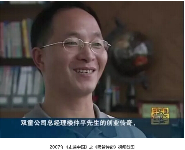 2006年,在《走遍中國》—《吸管傳奇》拍攝過程中,本來攝制組一開始只打算把焦點全部放在“雙童”一家企業(yè)上,但拍著拍著,“雙童”樓仲平的一個好想法油然而生:全國最大的幾家吸管制造企業(yè)都在義烏,為什么不拍一拍義烏的吸管行業(yè)呢?于是,在樓仲平的推薦下,攝制組又接連采訪了其它兩家企業(yè),整部片子以吸管行業(yè)發(fā)展為主軸加以貫穿,相比之前更為豐富飽滿。