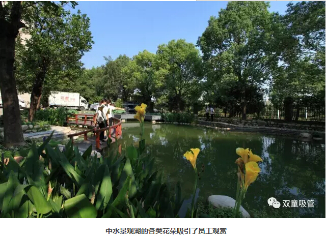 “雙童”人最喜歡駐足停留的便是行政樓前的中水景觀湖了,景觀湖將樹木、花朵、小橋、流水融合在一起,一旁的樹木搖曳風(fēng)姿,湖水在陽光的照耀下顯得格外美麗!