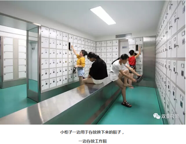2、員工來到第一更衣區(qū),將自己的私人衣物儲存在柜子中。