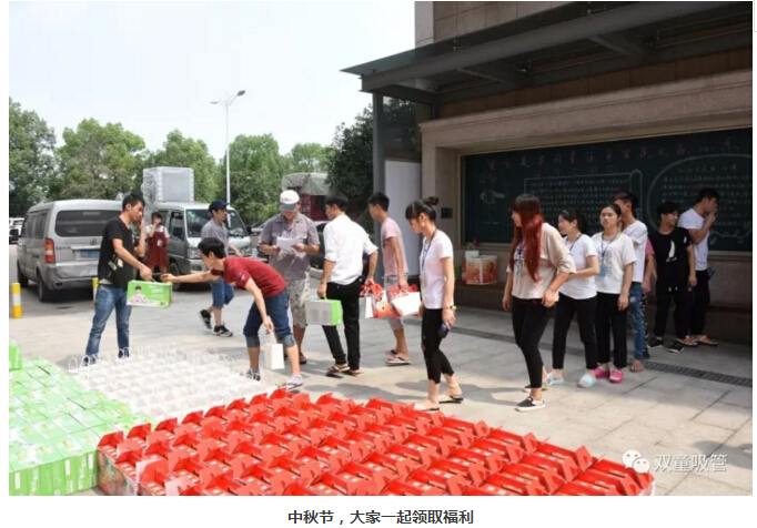 節(jié)假日當(dāng)然也不能錯過!三八婦女節(jié)、端午節(jié)、中秋節(jié)、春節(jié)……每逢節(jié)假日,也是雙童發(fā)放福利的最佳日子了!瞧!員工們拿著禮品滿臉笑容的樣子,也是員工們幸福的體現(xiàn)!