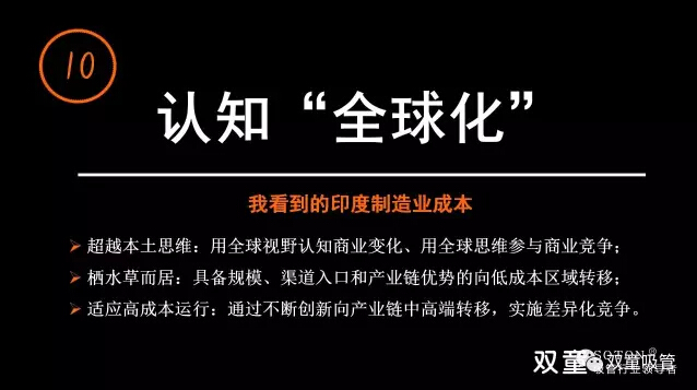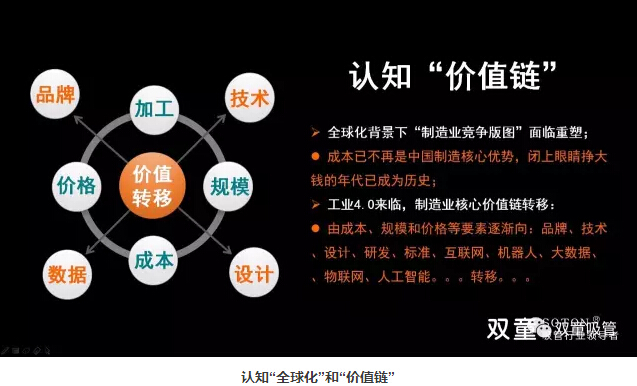 在全球化的背景下,成本不再是制造業(yè)的核心優(yōu)勢(shì)。企業(yè)必須面對(duì)時(shí)代的不斷變化,產(chǎn)業(yè)發(fā)展“棲”水草而居,中國(guó)制造商業(yè)競(jìng)爭(zhēng)“價(jià)值鏈”轉(zhuǎn)移逐漸從“規(guī)模型”向“價(jià)值型”轉(zhuǎn)變。企業(yè)經(jīng)營(yíng)“核心價(jià)值鏈”轉(zhuǎn)移,由成本、價(jià)格、設(shè)備、產(chǎn)品等要素逐漸轉(zhuǎn)向品牌、渠道、標(biāo)準(zhǔn)、研發(fā)、數(shù)據(jù)、互聯(lián)網(wǎng)…… 傳統(tǒng)業(yè)主杯具時(shí)代已經(jīng)來(lái)臨:經(jīng)驗(yàn)逐漸成為毒藥!