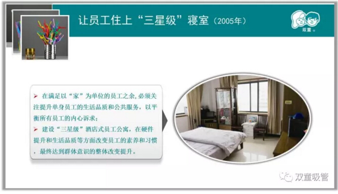 正巧從2006年開始,“雙童”在建廠之初建設(shè)的雨水收集、中水回用等節(jié)能降耗設(shè)施以及創(chuàng)造一流硬件讓員工住三星級(jí)寢室、建設(shè)物業(yè)團(tuán)隊(duì)服務(wù)員工、倡導(dǎo)“家文化”解決核心員工家庭生活問題等善待員工的經(jīng)營(yíng)理念受到了中央、省和市政府的高度關(guān)注,從而帶動(dòng)大量社會(huì)媒體到“雙童”采訪報(bào)道。