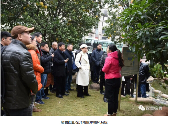 “2003年后,我受日本友人的影響探究日本‘利他經(jīng)營’,決定把‘雙童’建設(shè)成一個生態(tài)環(huán)保、綠色無污染的花園式工廠。我自學(xué)設(shè)計軟件畫了1300多份設(shè)計圖紙,設(shè)計出一套適合‘雙童’的節(jié)能降耗系統(tǒng),如:節(jié)能降耗設(shè)施中的“廢水收集處理循環(huán)回用系統(tǒng)”,其實就是將員工的生活廢水過濾后匯聚到‘雙童一號樹’下進(jìn)行生物吸附處理,再流入中水儲存池。處理水時不耗一度電,不耗一度煤,為廠區(qū)所有衛(wèi)生間的馬桶沖水、綠化噴淋和道路清洗、車輛清洗所用,使公司的員工生活用水量節(jié)省了65%!”