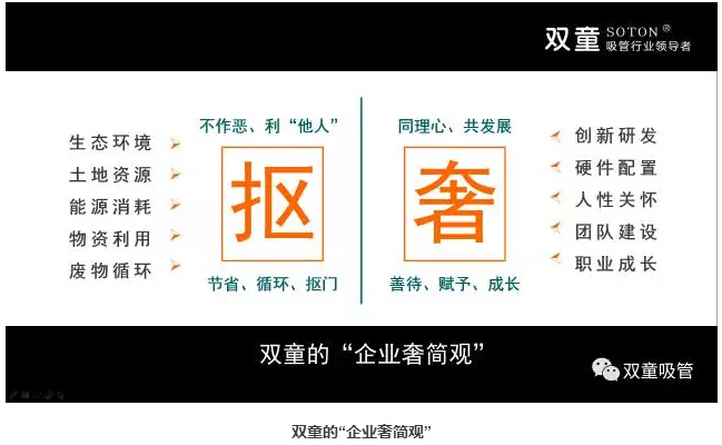 除了掙錢(qián)、除了創(chuàng)造、除了我們用“無(wú)所不用其極”的“創(chuàng)新”之外,我們也需要“利他”的“責(zé)任觀”。“雙童”樓仲平在經(jīng)營(yíng)企業(yè)的過(guò)程中深刻理解“摳”與“奢”的“企業(yè)奢簡(jiǎn)觀”,并深受日本文化和德魯克思想影響,非常重視社會(huì)責(zé)任、創(chuàng)新以及企業(yè)家精神的踐行。